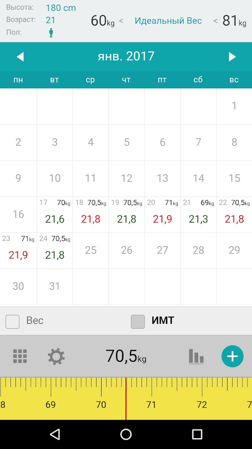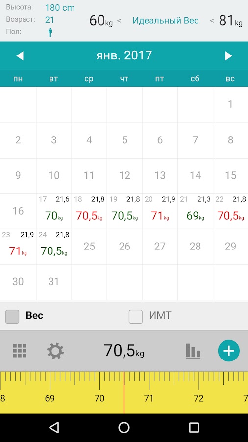 Скачайте приложение Вес Kалендарь — ИМТ Kалендарь для Android бесплатно - последняя версия (5.0.3) уже доступна для установки на ваш телефон или планшет.