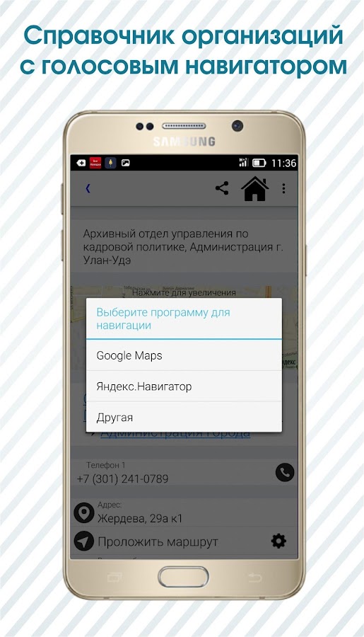 • справочник организаций с голосовым навигатором.