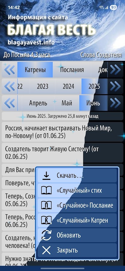Раздел «Календарь» – календарь с Катренами и Посланиями.