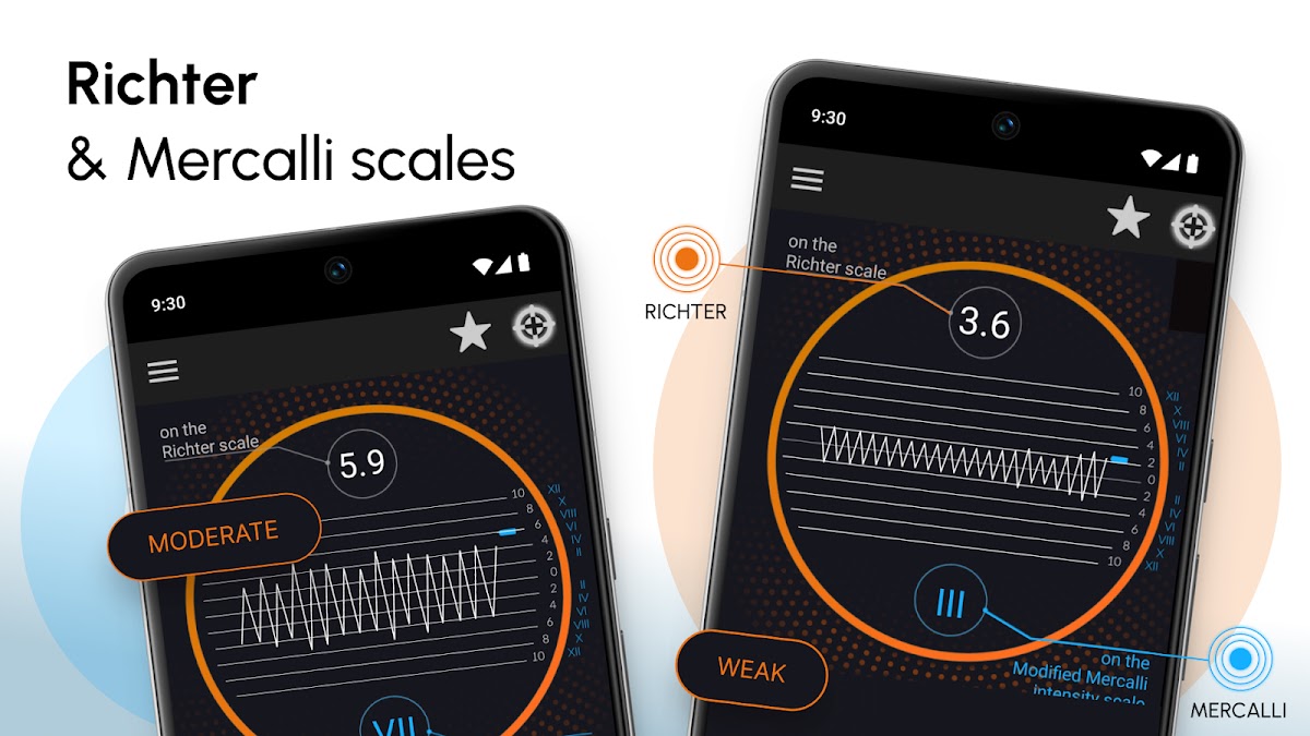 ★ Это приложение использует датчики телефона для измерения вибрации или землетрясения и показывает ссылку как сейсмический детектор. С помощью этого приложения вы можете проверять вибрации как по шкале Рихтера, так и по модифицированной шкале интенсивности Меркалли.
