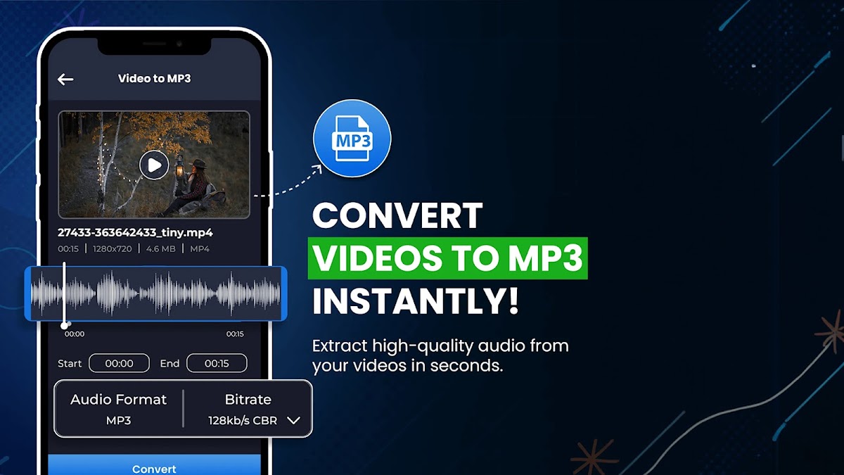 Конвертер видео в mp3 — это полезное приложение для преобразования любых файлов формата mp4, видео в mp3 и аудиофайлы. Вы можете обрезать, вырезать видеофайлы, объединять аудио и конвертировать видео в mp3 с совершенно новыми функциями. Это приложение Video Converter также может извлекать песни в формате mp3 из HD и видео в формате Full HD.
