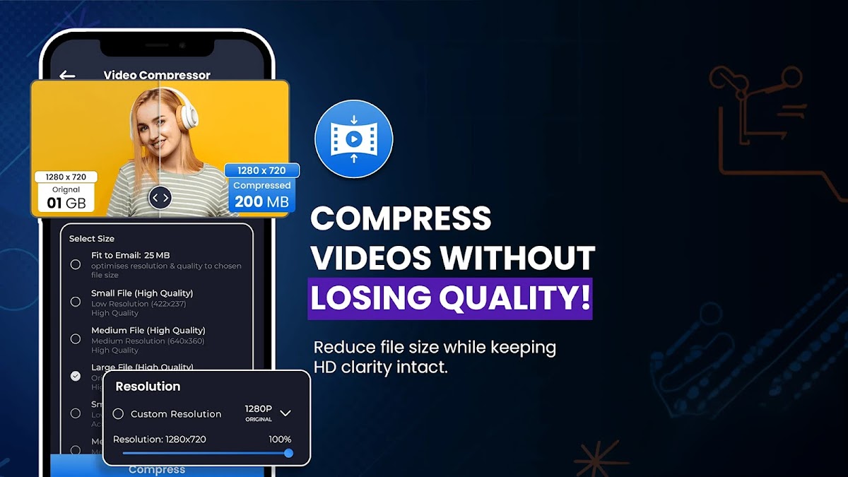Video Compressor — Video Converter автоматически сжимает видео меньше без потери качества и конвертирует практически любой формат видео.