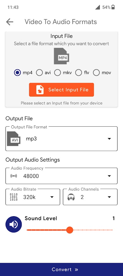 Вы можете преобразовать все популярные форматы видеофайлов, такие как MP4, AVI, MKV, MOV, FLV в форматы аудиофайлов, такие как MP3, WAV, AAC OGG, FLAC, AIFF, AU