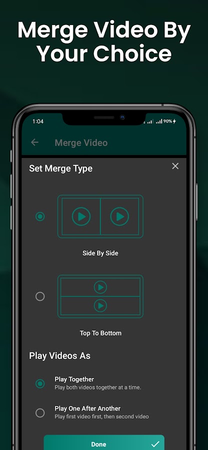 ➜ Воспроизвести вместе. Если вы включите этот параметр, два видео будут воспроизводиться вместе в результате слияния видео.