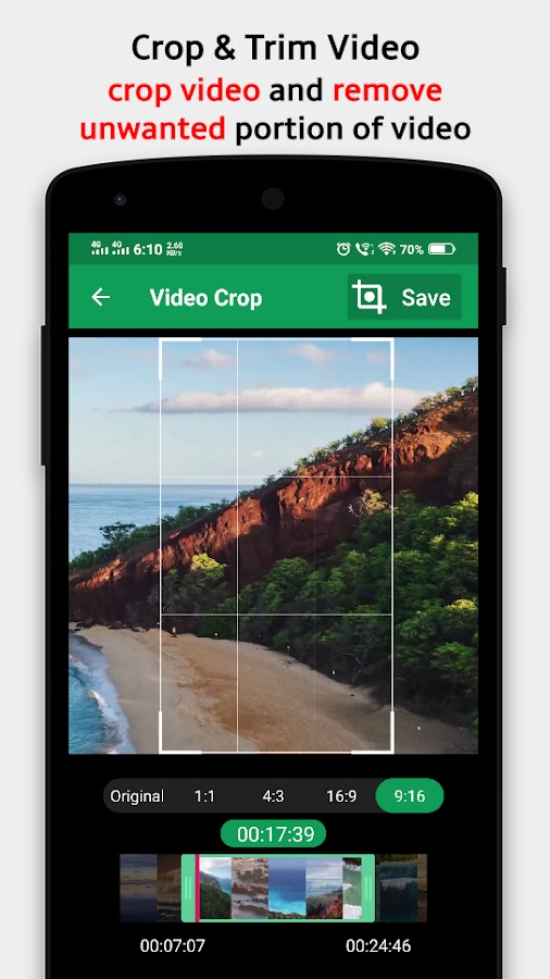 ✂️ Легко вырезать, обрезать, изменять размер и сжимать в любое видео.
