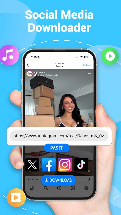 • Загрузчик из социальных сетей: загружайте из Facebook, Instagram и других источников
