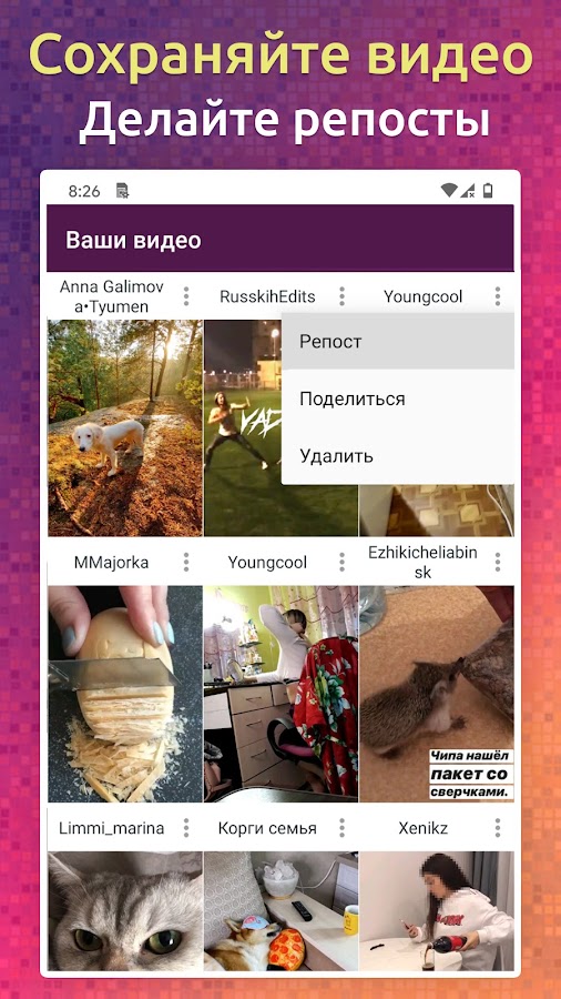 Сделать репост из лайка или поделиться ими с друзьями так же легко и просто, наше приложение поможет вам в этом.