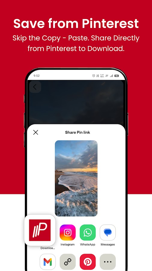 Сохраняйте фотографии, видео и GIF-файлы Pinterest всего за несколько секунд.