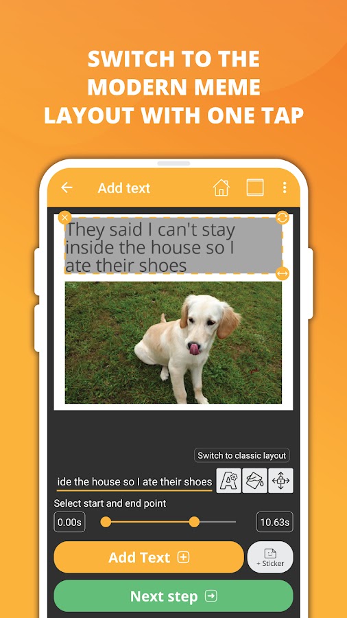 ✂️ Бесшовное редактирование: наслаждайтесь удобным пошаговым процессом редактирования для легкого создания мемов.