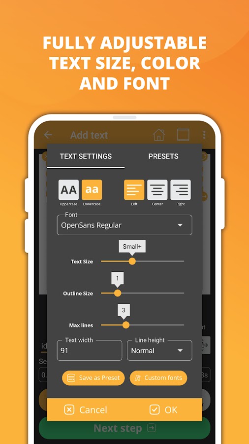 ✏️ Настройки текста: полностью настраивайте текст с настраиваемыми параметрами, такими как размер, цвет, шрифт и выравнивание.