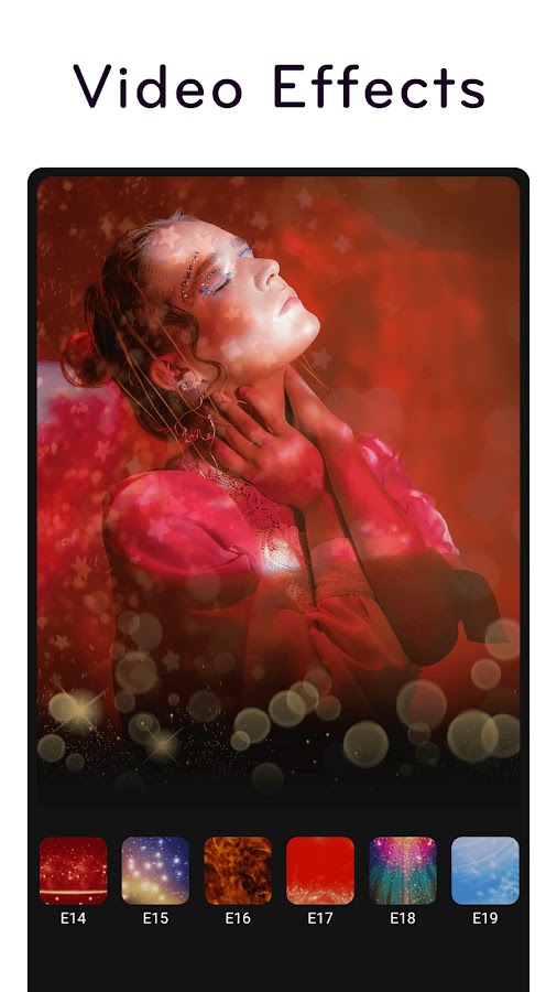 • Романтические видеоэффекты: свет, пузырь, любовь, огонь … Настройте прозрачность эффекта.