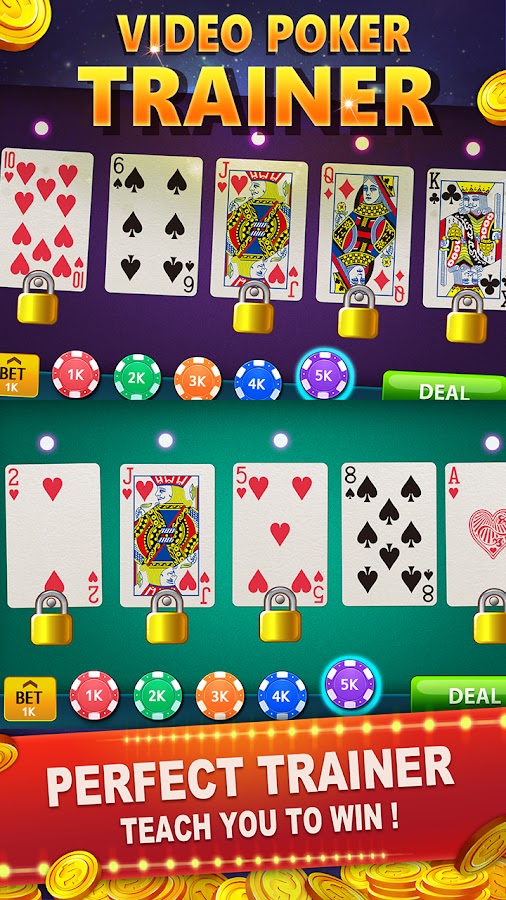 Режим обучения видеопокера, предоставляет вам наставника по видеопокеру и тренера по видеопокеру, чтобы помочь вам улучшить вашу стратегию видеопокера.
