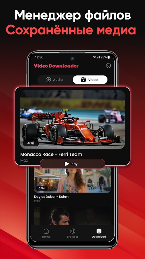 ⚡ Получите доступ к скачать видео и воспроизведите их в встроенном менеджер файлов.