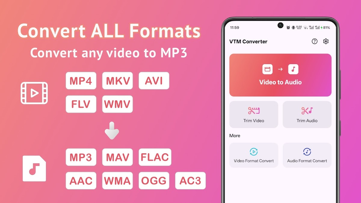 Конвертер видео в MP3 — это быстрый и простой способ конвертировать видео в аудио MP3. Извлекайте аудио из видео, обрезайте видео или аудиофайлы и конвертируйте видео или аудио форматы всего за несколько касаний. Благодаря пакетной обработке вы можете конвертировать несколько видео в MP3 одновременно и экономить время.
