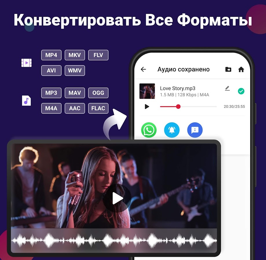 Конвертер видео в MP3 — это лучшая программа преобразования видео в MP3 для Android. Она простая, мощная и абсолютно БЕСПЛАТНАЯ.
