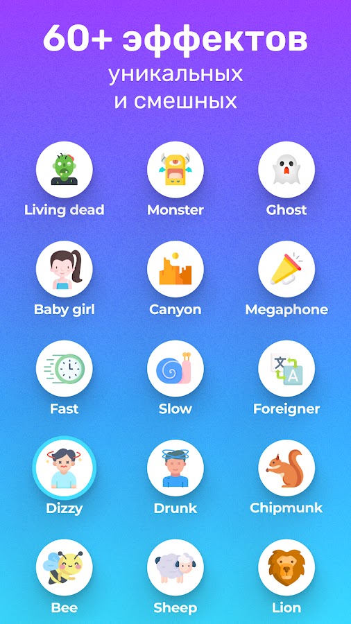 🗣️ Преобразуйте свой голос в различные пользовательские эффекты, такие как девочка, мальчик, женщина, мужчина, ребенок, гигант, инопланетянин и другие.