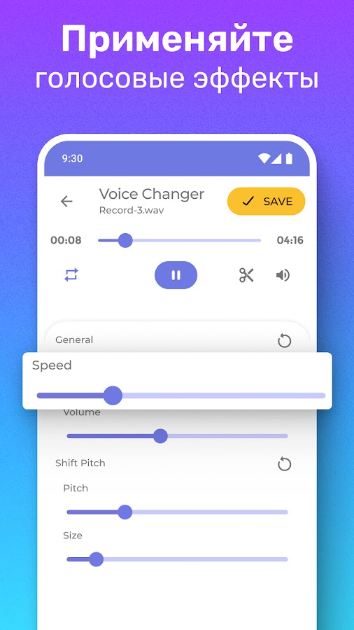 🗣️ Редактируйте голосовые клипы с помощью таких функций, как скорость, громкость, высота тона, высокие и низкие частоты, а также искажения.