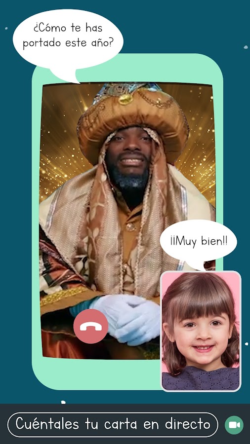 Насладитесь бесплатным видеозвонком с волхвами в это Рождество и поделитесь рождественскими посланиями для детей от Мельхиора, Гаспара и Бальтазара. 6 января вы получите свои подарки от волхвов, но сначала вам нужно будет попросить их, и что может быть лучше, чем сделать это по телефону? Это приложение идеально подходит для родителей, которые хотят удивить своих детей особенным рождественским событием на испанском языке.