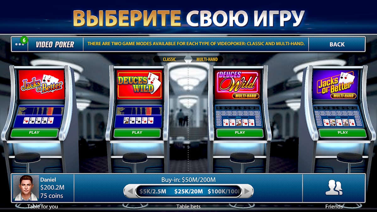 • КЛАССИЧЕСКИЙ И МУЛЬТИХЕНД-ВИДЕОПОКЕР – Погрузитесь в атмосферу классического и мультихенд-видеопокера и наслаждайтесь превосходной графикой!