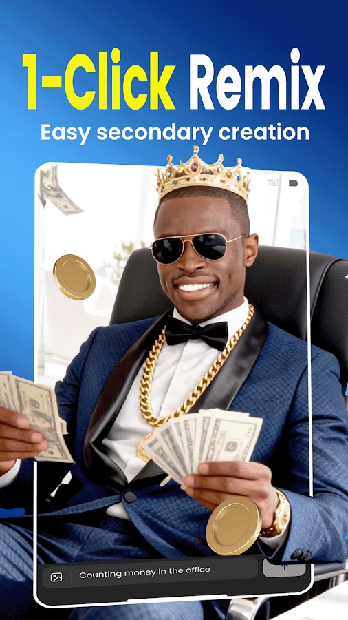 Ремикс от сообщества: Увидели понравившуюся идею? Нажмите «Ремикс», чтобы мгновенно превратить ее в свое уникальное творение с соответствующими визуальными и звуковыми эффектами.