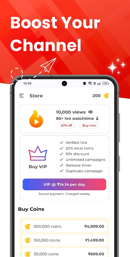 — Смотрите видео, чтобы заработать монеты, используйте их, чтобы увеличить количество просмотров, добавив видеокампанию.