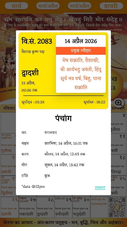 Викрам Самват 2083, индуистский календарь Панчангам с цитатами и историями из Санатана Дхармы. हिन्दू पंचांग 2026 — 2027 также известен как календарь Викрами, поскольку он использует лунные месяцы и солнечные сидерические годы. Используя его, вы можете получить все подробности о ежедневном положении планет, включая время восхода и захода солнца, восхода и захода луны, а также титхи и ежемесячный хинди-панчангам года. Викрам Самват 2083 с цитатами из священных писаний Санатана Дхармы, таких как Шримад Бхагавад-Гита, Махабхарата, Рамаяна, Веды и Пураны, дает представление о культурных аспектах индуистской традиции. Помимо этого, в сборник добавлен раздел коротких рассказов «Лагху-катхайен», призванный познакомить читателей с вдохновляющими историческими аспектами санатана-культуры. Эти истории вдохновлены событиями, описанными в пуранических текстах и литературе, и призваны донести до читателей этические и моральные аспекты нашей культуры. Индуистский календарь 2026 года имеет прямое соответствие между индийскими временами года и месяцами, а также григорианским календарем 2026 года и 2027 годом. Панчанг 2026 года охватывает первые 3 месяца календарного года 2027 года, поскольку он приходится на 2083 год санатана-панчанга.
