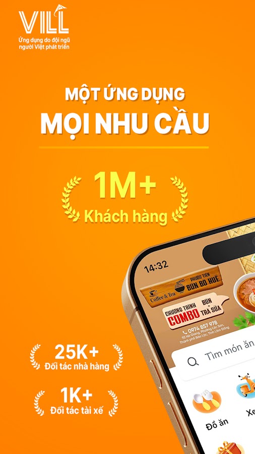 VILL: Đặt xe & giao đồ ăn