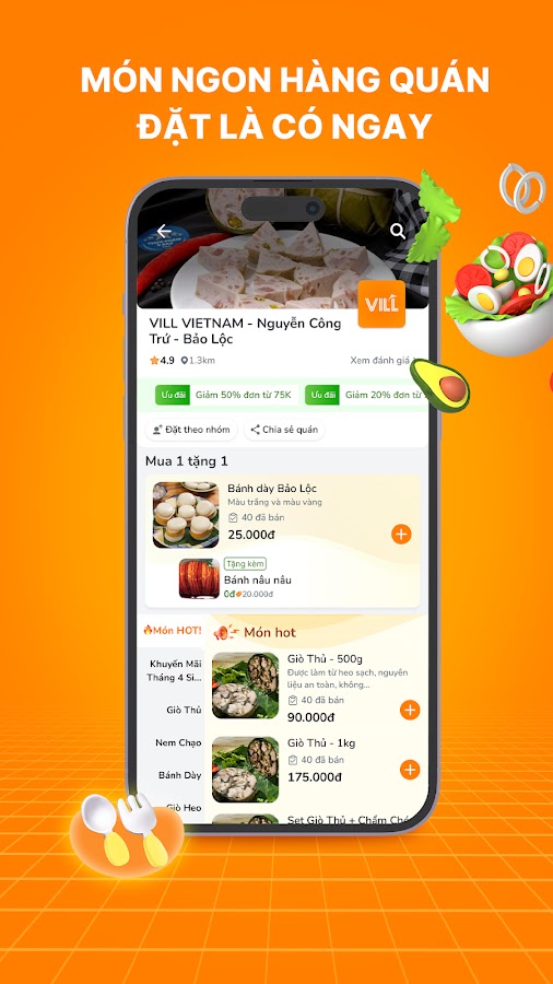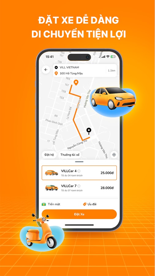 Описание VILL: Đặt xe & giao đồ ăn