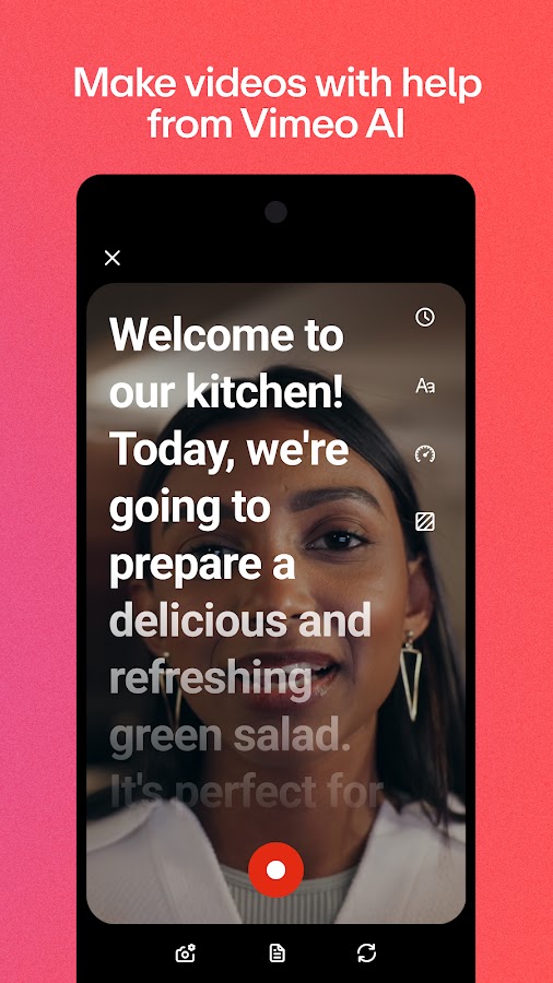 Видеоинструменты на базе искусственного интеллекта для создания видеороликов за один дубль: создавайте сложные сценарии за считанные секунды с помощью создания сценариев искусственного интеллекта, захватывайте контент прямо с вашего устройства Android с помощью встроенного телесуфлера и делайте все это за один дубль благодаря простому редактированию видео. просто, как редактирование текста.