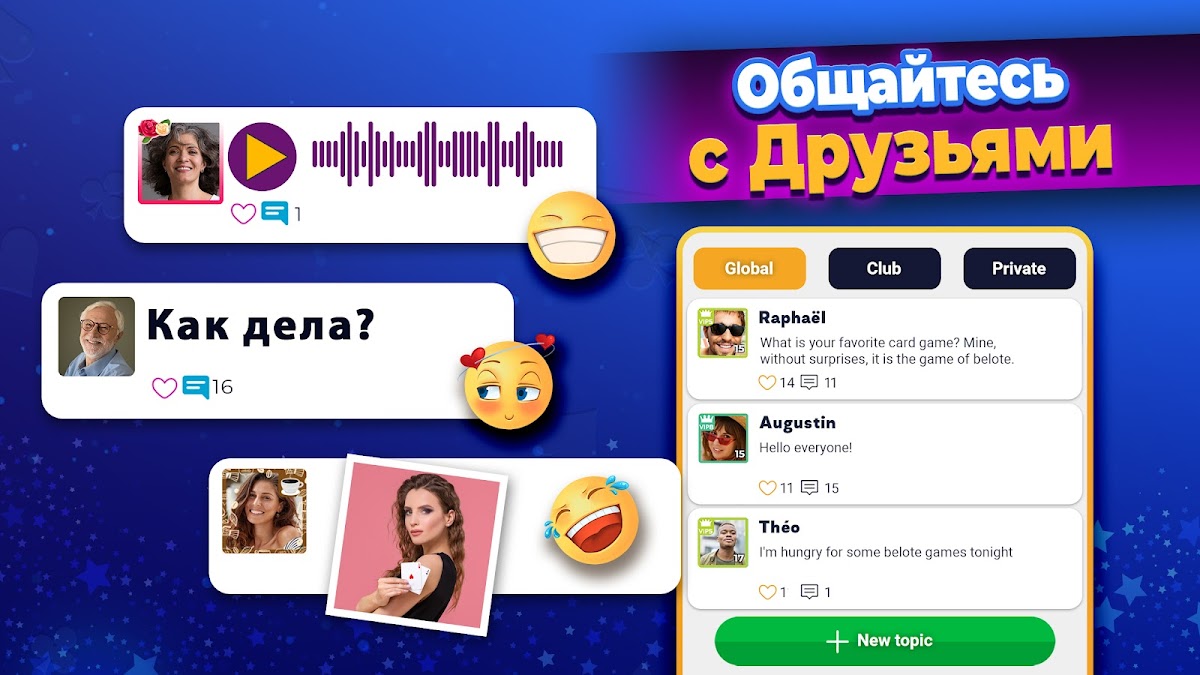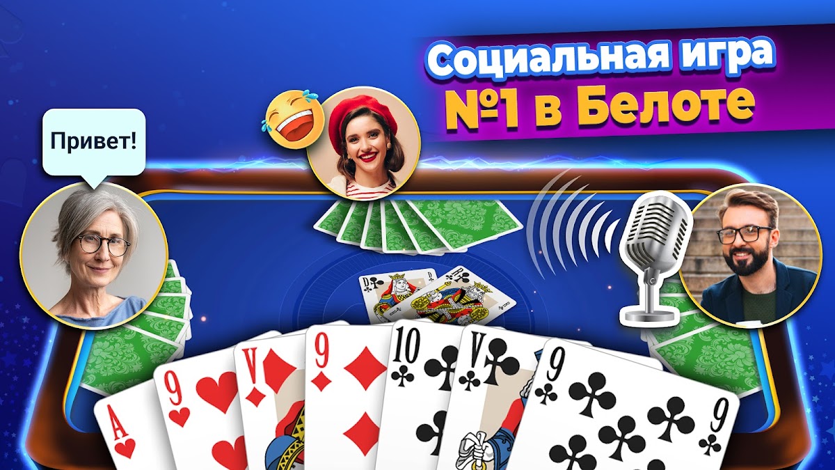 Он социален — играйте в белот с друзьями.
