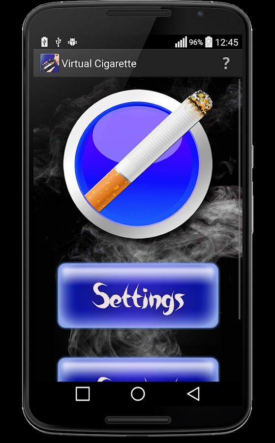 Если вы хотите курить, и вы хотите, чтобы отказаться — скачать виртуальную сигарету! Это поможет вам бросить курить! Вы можете курить, когда и где вы хотите! Они здоровы и бесплатно! Он не содержит табак!