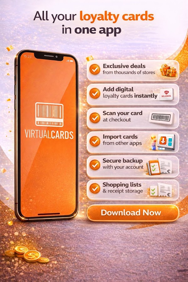 Скачайте VirtualCards сейчас — бесплатный цифровой кошелёк для карт лояльности, которому доверяют миллионы!
