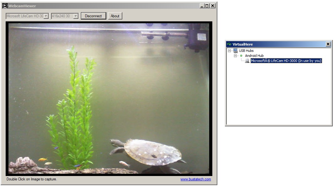 На первом снимке экрана показана веб-камера USB, подключенная к удаленному устройству Android и используемая на локальном компьютере с Windows. то есть преобразование обычной веб-камеры в веб-камеру IP. При совместном использовании веб-камеры рекомендуется, чтобы ваше устройство Android подключалось через Ethernet для минимальной задержки в сети.