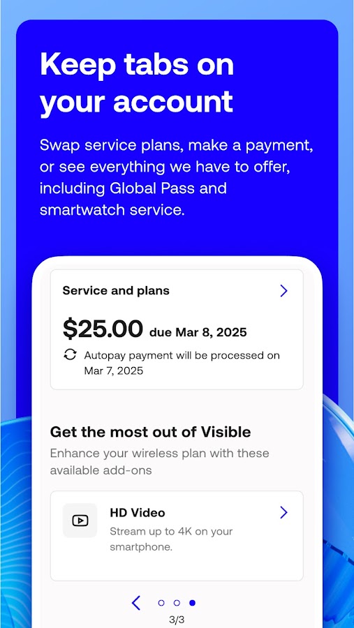 Приложение Visible упрощает управление вашими услугами: вы можете совершить платеж, обновить свой план и получить круглосуточную помощь всего за несколько нажатий. Вот краткий обзор того, что еще вы можете сделать в приложении: