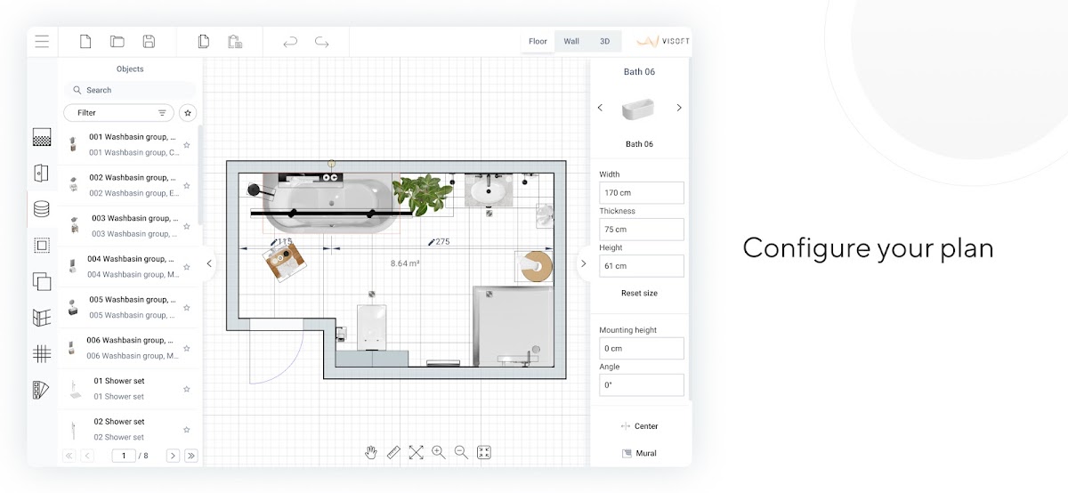 Проводите замеры и проектируйте где угодно: приложение разработано для планшетов и смартфонов специально для пользователей ViSoft Premium. Позволяет проектировать помещение и сохранять все размеры на объекте. Этот инструмент для консультации работает также как и ViSoft Premium. Вы проводите замеры, рисуете комнату и показываете ее заказчику в 3D. Это дает первое представление о преимуществах консультаций на основе программного обеспечения и позволяет обсудить общую идею дизайна.