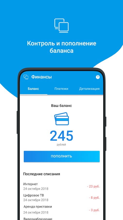 Пополнение счёта в один клик.