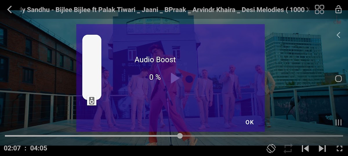 Элементы управления жестами позволяют быстро настроить яркость, громкость или поиск времени, а элементы управления на экране позволяют получить доступ к 10-полосному эквалайзеру, настроить скорость воспроизведения и включить ночной режим. Пользователи могут добавить смещение звука или субтитров, если воспроизведение не синхронизировано, а также заблокировать таймер сна.