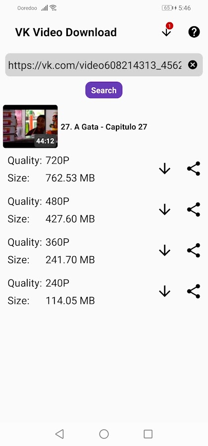 — Нажмите кнопку загрузки и выберите качество видео, которое вы хотите сохранить.