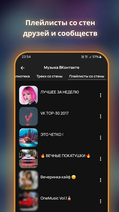 • Музыка из ВКонтакте — слушайте любимые треки без ограничений.