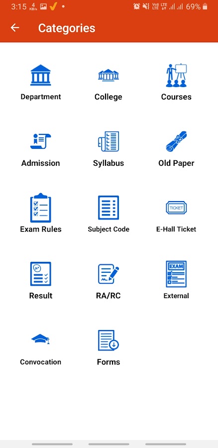 Это приложение также предоставляет информацию, которые очень полезны для студентов, как Программа курса, старый вопрос газеты, экзамен правилам, Расписание экзаменов, адрес электронной зал билетов, результат, внешний экзамен и созыва.