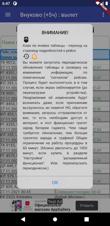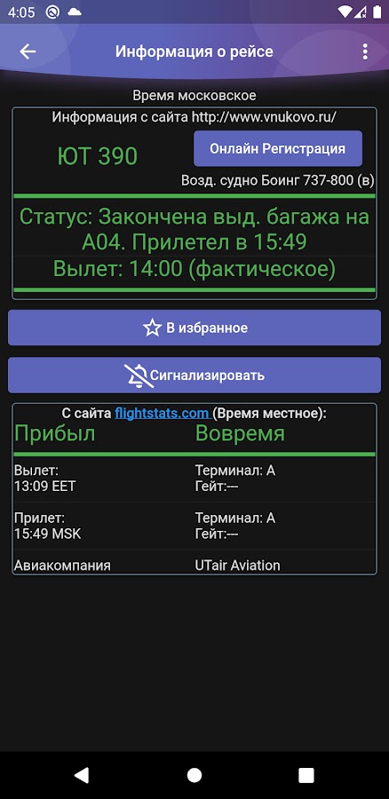 ➤ ОПОВЕЩЕНИЯ об изменении статуса рейса, даже при заблокированном экране (но тратит батарею)