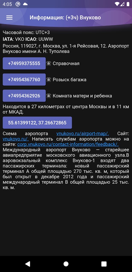 Это НЕофициальное приложение с информацией о вылетах и прилетах аэропорта Внуково (Москва)