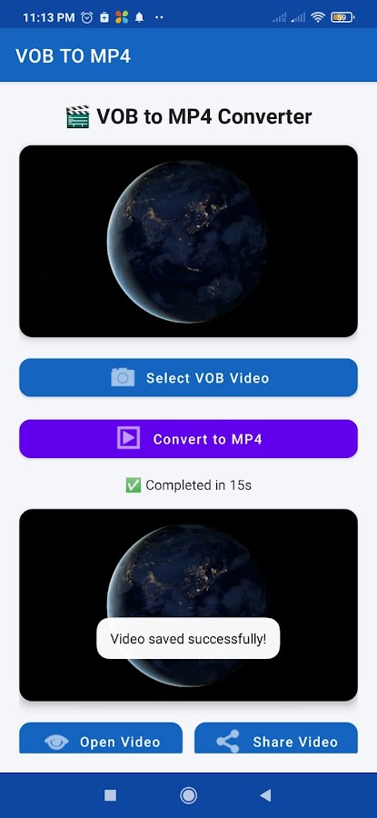 🎥 Конвертируйте файлы VOB в формат MP4 без труда с помощью приложения VOB to MP4 Converter! Работаете ли вы с DVD-видеофайлами или старыми клипами в формате VOB, это приложение поможет вам превратить их в высококачественные файлы MP4, совместимые со всеми устройствами Android.