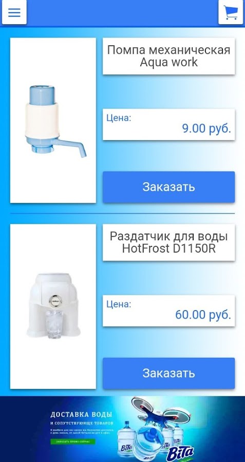 Вода Вита — это удобное мобильное приложение для заказа питьевой воды и сопутствующих товаров в несколько касаний. Достаточно раз скачать приложение на телефон и можно делать заказ всего за пару секунд. Наша компания доставляет воду в следующие города: Витебск, Полоцк, Новополоцк, Орша.