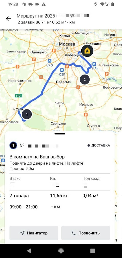 Мобильное приложение для водителей, доставляющих заказы Лемана Про клиентам.