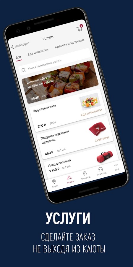 Заказать завтрак в каюту, записаться на массаж или в сауну — теперь доступно прямо с экрана мобильного устройства. Все заказы попадут на Ваш персональный счет на теплоходе.