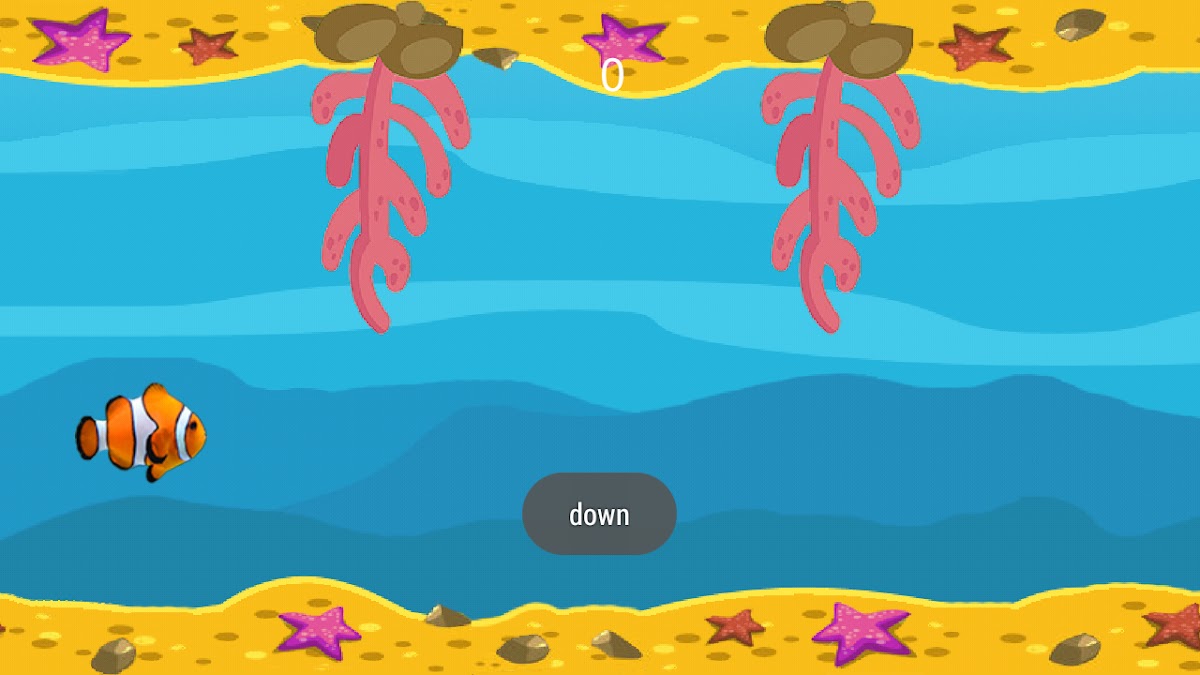 2. Используйте голосовое управление, когда говорите «вверх», «вниз», «скорость», чтобы рыба-клоун двигалась вверх или вниз и на большой скорости. Когда говорите «удерживать» или сильно нажимаете на экран, можно остановить движение вверх или вниз.