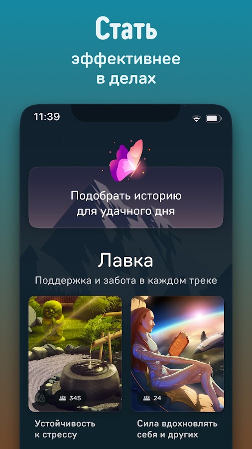 В отличие от медитации, в наших треках поддерживается максимальный уровень активности и осознанности. Мозг входит в особое трансовое состояние, усиленно обучается и результат получается очень быстрым. Отдаленно это напоминает аффирмации. Первый эффект можно заметить уже в первой истории, через 8 минут.