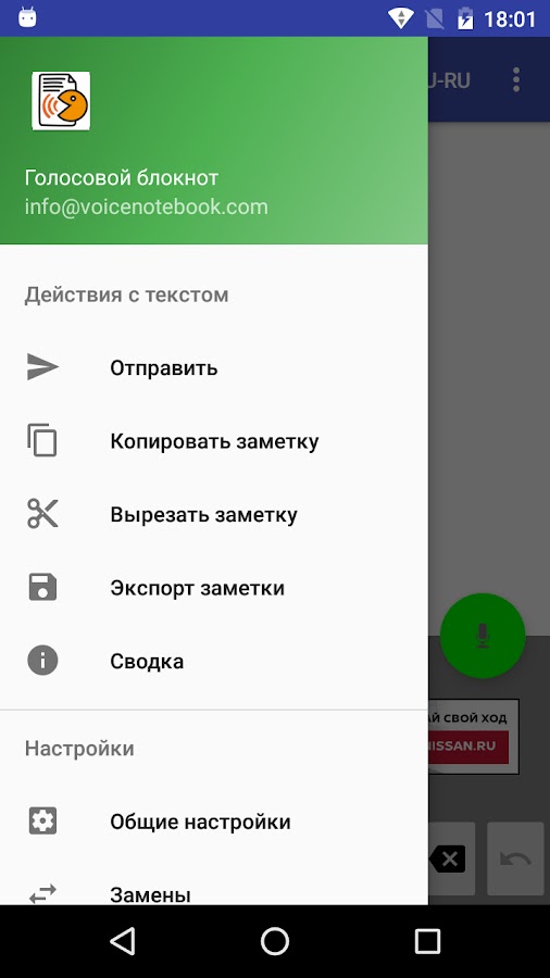 1. Приложение использует распознаватель речи Android по умолчанию и оптимизировано для использования голосового ввода от Google, поэтому на устройстве (телефоне или планшете) должно быть установлено и обновлено приложение распознавателя речи Google (!)
