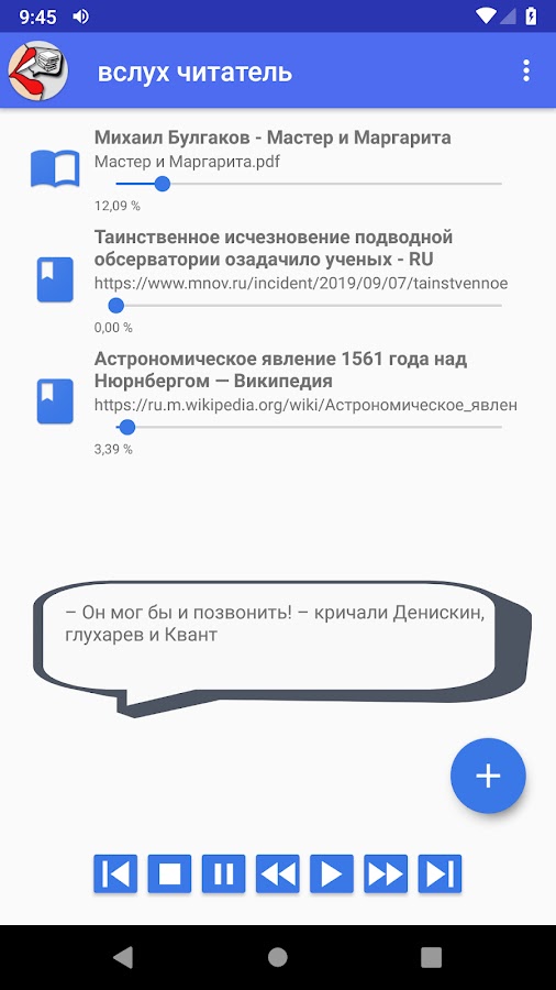 Скачайте приложение вслух читатель на русском для Android бесплатно - последняя версия (8.3.7) уже доступна для установки на ваш телефон или планшет.